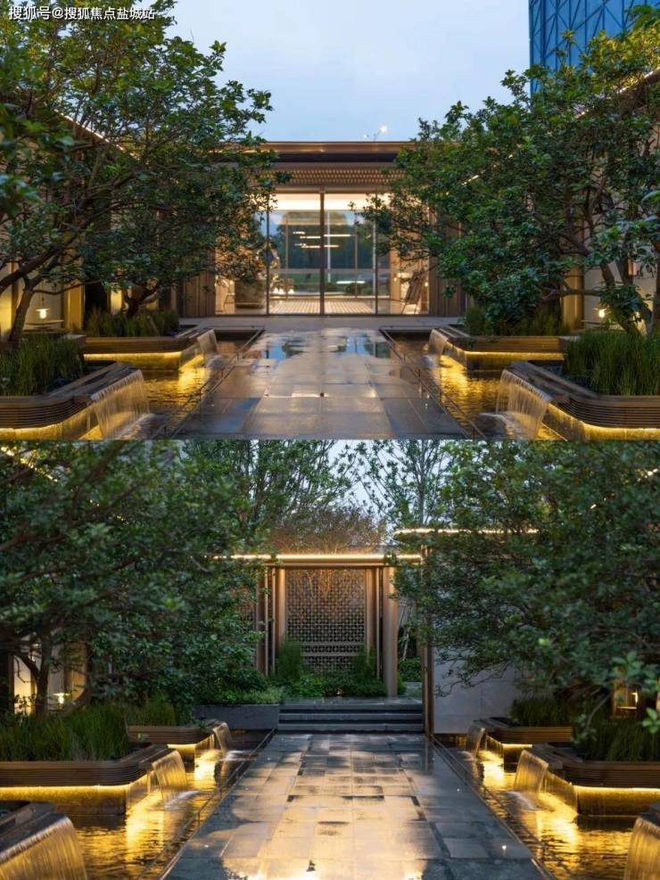 走进度假式园林,这里的自然景观让人心旷神怡。一踏入社区,六颗甄选的香橼树便迎面而来,带来了浓浓的自然度假风。远处的瀑布跌水勾勒出一幅流淌的森屿美景,仿佛置身于一幅壮丽的画卷中。浅米色的仿石材景墙与大堂入口遥相呼应,营造出一种和谐而统一的美感。